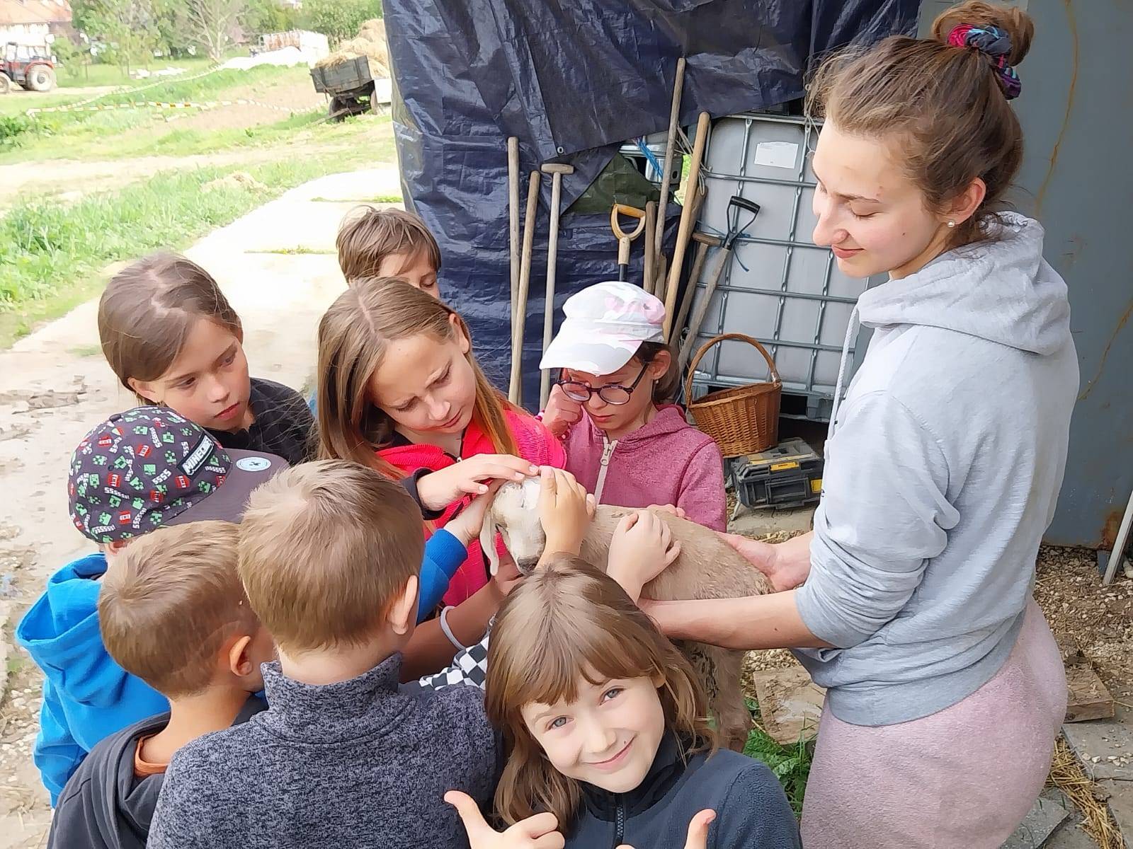 Žáci mají také možnost navštívit s paní Komínkovou jejich farmu a podívat se na zvířátka, která tam žijí. Při té příležitosti si všechny zvířátka mohli pokrmit a pohladit. Největší zážitek však pro žáky byli klokani a jejich mládě, kteří rovněž na farmě žijí. Ani se nám nechtělo zpět do školy :).