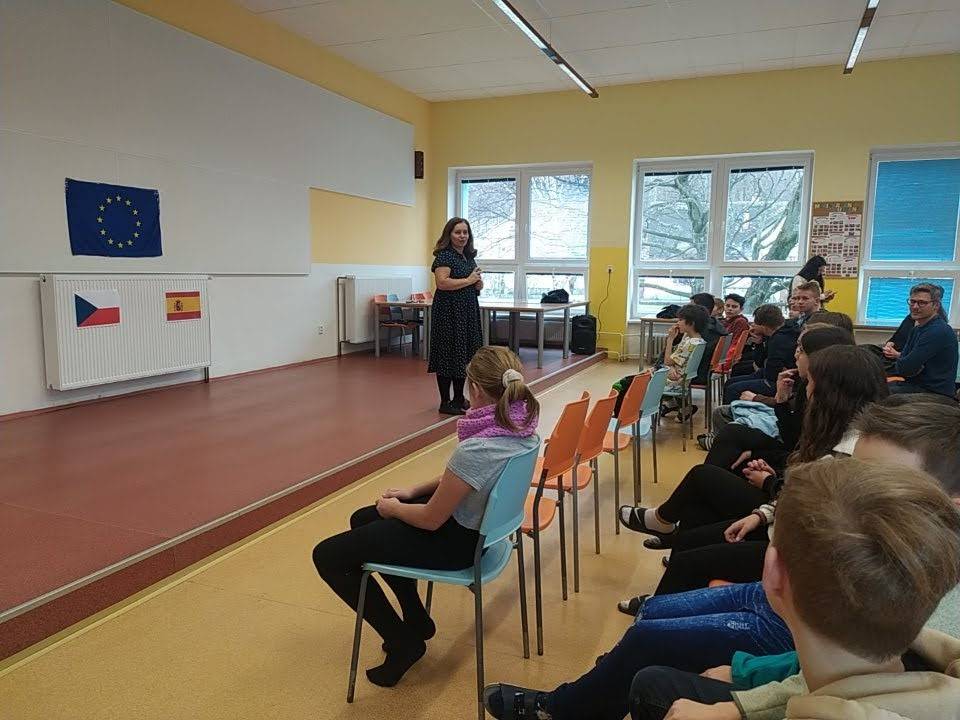 Erasmus+ ”Španělská návštěva”Erasmus+ ”Španělská návštěva” Tento projekt měl seznámit žáky z jiných zemí s naší kulturou a přiblížit jim běžný život v české rodině. Ve středu 21.2. přijela první skupinka dětí ze španělské Tortosy a druhý den ve čtvrtek 22.2. přijela i druhá skupina z Batey. Dohromady přijelo 24 dětí a 4 učitelé. Ubytování a stravování jim poskytli rodiny žáků 6.- 9. tříd naší školy. Obědy a některé dny i svačiny poskytovala škola. Ve čtvrtek ráno jsme se sešli na autobusovém nádraží v Jeseníku, šli jsme na procházku na Křížový Vrch, rozhlednu Zlatý Chlum a vyhlídku na Čertových kamenech. V pátek jsme všechny hosty přivítali v jídelně, páťáci nám předvedli španělskou píseň a tanec. S kamarády ze Španělska jsme se lépe poznali u teambuildingových aktivit, později jsme jim ukázali školu. V sobotu jsme společně navštívili Jeskyně na Pomezí a Lesní bar. Viděli jsme netopýry a v Lesním baru jsme si mohli opéct špekáčky. V neděli děti ze Španělska trávili čas s rodinami. V pondělí ráno jsme jeli na kluziště do Jeseníku a odpoledne pro nás učitelé nachystali různé workshopy. Projeli jsme se na koloběžkách, připravovali palačinky, učili jsme se česká a španělská slova, řešili jsme logické úlohy, závodili jsme s roboty. V úterý ráno jsme si spolu v tělocvičně zatančili, potom jsme jeli do Lázní Jeseník, kde jsme hledali poklad. Restaurace u Jezera nám všem připravila sváteční oběd, který nám moc chutnal. Odpoledne ve škole jsme se rozloučili na párty, ochutnali jsme výborný dort a poslouchali muziku. Ve středu 28.2. jsme našim kamarádům ze Španělska zamávali. Celý týden jsme procvičovali angličtinu, školní aktivity a výlety nás moc bavili, naši hosté ochutnali typická česká jídla - svíčkovou, borůvkové knedlíky, smažený sýr. Těšíme se na další setkání, které proběhne koncem května ve španělské Tortose. Eliška Pluháčková a Maxim Šulák (žáci 7. A)